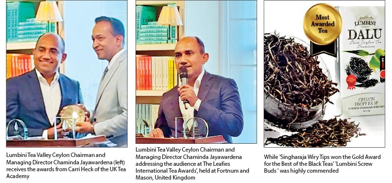 Lumbini Tea Valley Ceylon Chairman and Managing Director of Chaminda Jayawardena who was in London to accept the awards thanked the entire Lumbini family, whose dedication and commitment over the years have made this success possible.
