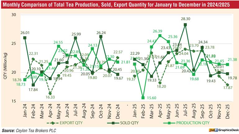 The Sri Lankan tea industry experienced an increase in Production, Exports whilst recording a decrease in National Average for the period January to December 2025 compared to the corresponding period in 2024.
