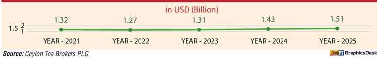 The Total revenue realized for the period January – December 2025 from Tea Exports was Rs.453.28 Bn (USD 1.51Bn) compared with Rs.433.47 Bn (USD 1.43 Bn) recorded for the period January to December 2024. It’s an increase in Rupee terms (+Rs. 19.80 Bn) and Dollar value (+USD 71.38 Mn) compared to the same period in 2024. Teas in Packets and Teas in bulk showed a decrease in FOB Value.
