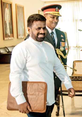 | President and Finance Minister Anura Kumara Dissanayake arrives in Parliament to deliver the 2026 Budget yesterday |