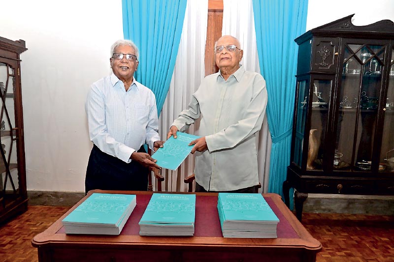The Gamani Corea Foundation launched the monograph ‘Development: Not By Economics Alone by Dr. Nimal Sanderatne,’ Emeritus Chairperson of the Foundation, on Friday at Horton Lodge. The event was open with a welcome address by Dr. Harsha Aturupane, followed by an address by Dr. Sanderatne. The book was formally handed over to the author by Prof. Sirimevan Colombage (left) – Pic by Sameera Wijesinghe