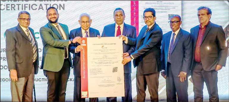 Director and Group Consultant Hugh Indrajith, Director and Group Chief Executive Officer Farih Fazal, Chairman Anura Kumarasinghe, Managing Director M.H.M. Fazal, and Bureau Veritas Sri Lanka Country General Manager Shan Nanayakkara and his team