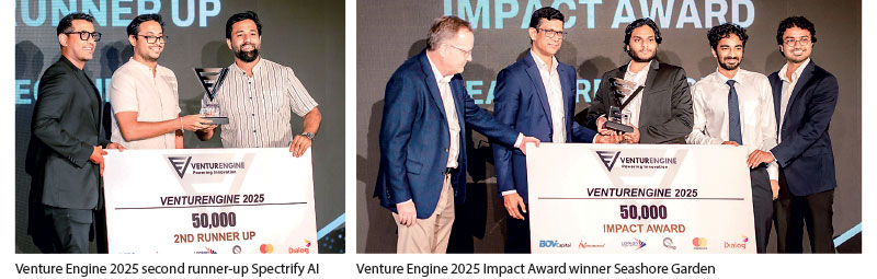 Spectrify AI, co-founded by Jeevan Gnanam and Lakshan De Silva, secured second runner-up, recognised for its use of AI and spectral analysis to improve quality control and consistency in agriculture. Adil Mansoor and Capital Alliance Partners CEO Nishok Goonasekara presented the award.
