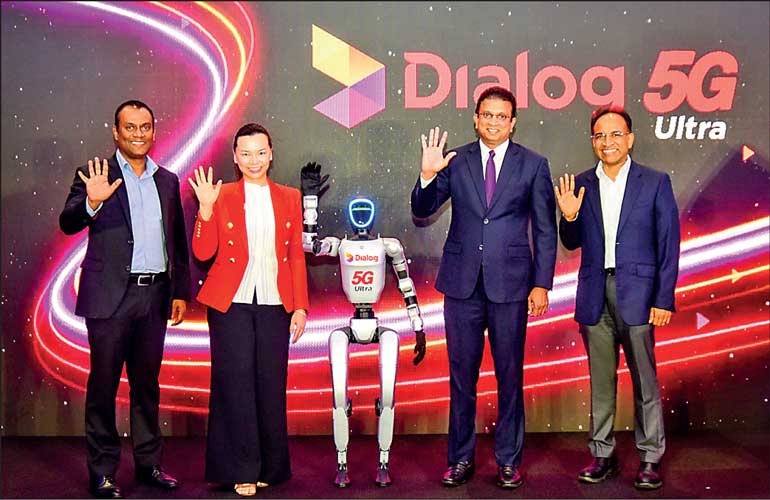 From left: Dialog Axiata Group Chief Technology Officer Ranga Kariyawasam, Group Chief Operating Officer Lim Li San, NOVA, the humanoid robot powered by Dialog 5G Ultra, and Dialog Axiata Director/Group Chief Executive Supun Weerasinghe, and Dialog Axiata Group Chief Commercial Officer and Acting Group Chief Financial Officer Munesh David
