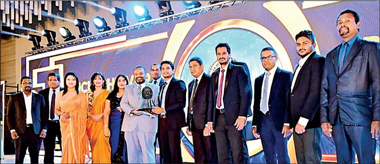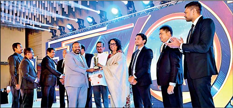 Flexiprint Director Isuru Abeywickrama (left) receiving the Top 10 award from Prime Minister Dr. Harini Amarasuriya