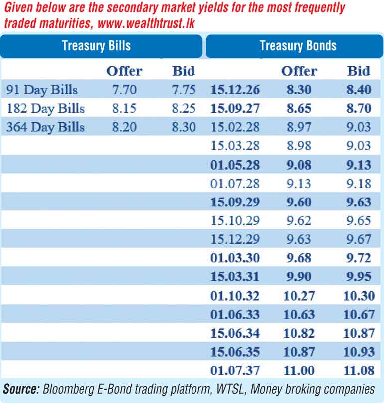 (References: Public Debt Management Office - Ministry of Finance, Central Bank of Sri Lanka, Bloomberg E-Bond Trading Platform, Money Broking Companies)