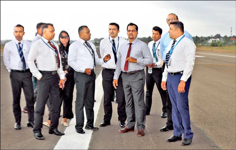 CAASL Chairman Sunil Jayarathne and officials discuss on the Batticaloa Airport runway