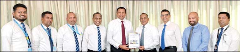 HNB Senior Vice President and Head of Retail Banking Kanchana Karunagama (left) and Senok Trade Combine Deputy Managing Director Ranjan Dahanayake along with officials of the two companies