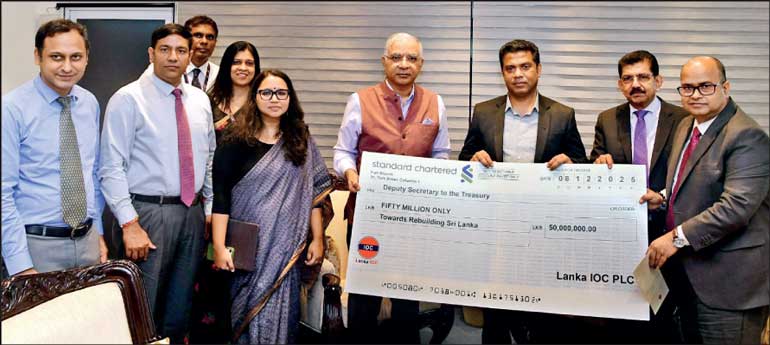 Demonstrating its continued commitment to national development, Rs. 50,000,000.00 was donated to the “Rebuilding Sri Lanka” Fund under the “We Care” CSR initiative of Lanka IOC PLC. The cheque was handed over to the Health and Mass Media Minister Dr. Nalinda Jayatissa, by the LIOC Managing Director. The High Commissioner of India to Sri Lanka Santosh Jha, also participated in the event.