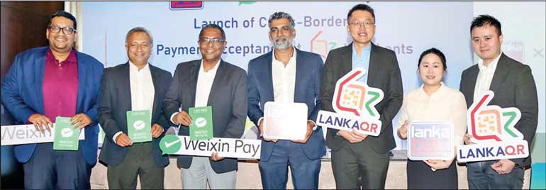 From left: LankaPay Senior Manager – Global Operations Harsha de Silva, Deputy CEO Dinuka Perera, CEO Channa de Silva, Sri Lanka Tourism Promotion Bureau Chairman Buddhika Hewawasam, Weixin Pay Country Manager David Chong, Senior Manager Laura Wang and Senior Manager Calvin Thye