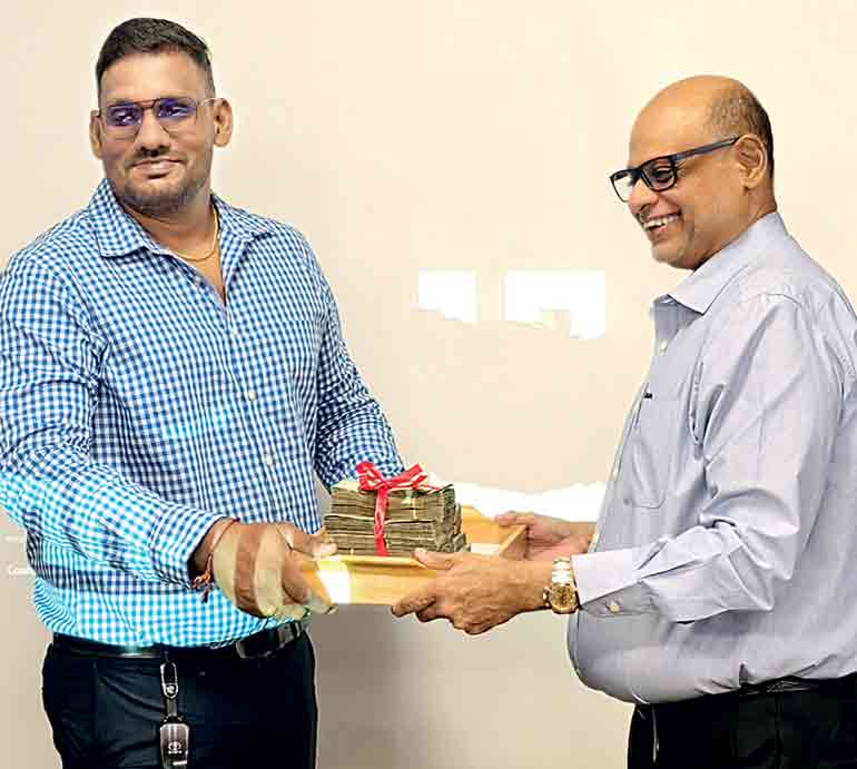 Lankem Managing Director Suren Goonewardene (right) presenting the first invoice consignment to Kasie Chemical Vavuniya Owner and Dealer Kasinathan Kowsikan