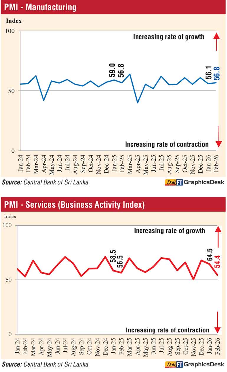 The country’s manufacturing and services sectors in February have expanded, as per the Purchasing Managers’ Index (PMI), its compiler the Central Bank of Sri Lanka (CBSL) said.