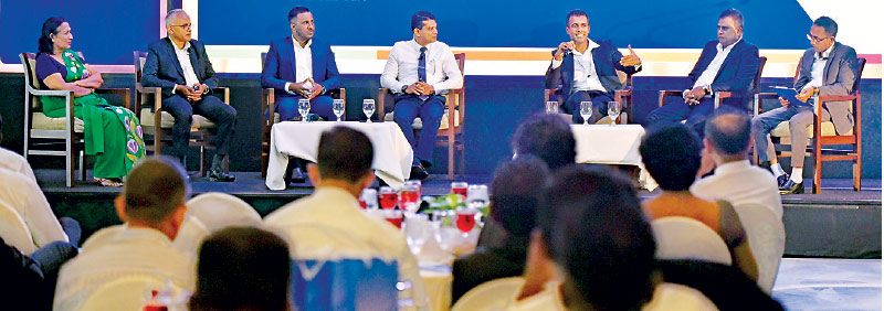 From left: Project Consultant Pradeepa Dissanayaka, Asian Agro Products Managing Director Chrishan Fernandopulle, Teelan Salon Care Managing Director Thilan Basnayake, Gampaha District Secretary and Government Agent Lalinda Gamage, Bread Cart Managing Director Sasi Prabha Mudannayaka, Project Consultant Darshana Kulatunga and Moderator Project Consultant Harshana Arangalla