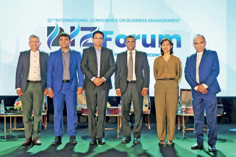 The panel featured Dr. Suriyapperuma alongside Brandix Lanka Ltd., Managing Director Hasitha Premaratne, CBL Group Managing Director Shea Wickramasingha, and Dialog Axiata Executive Director and Group Chief Executive Supun Weerasinghe. The session was moderated by Prof. Dushan Jayawickrama and Dr. Asanga Ranasinghe.