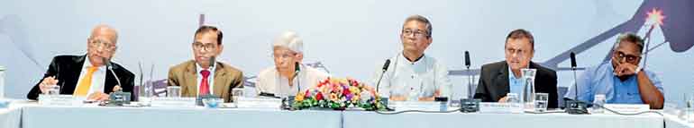 From left: Capital Maharaja Group Executive Director Nimal S. Cooke, Prof. Kithsiri Dissanayake, Pathfinder Foundation Chairman Bernard Goonetilleke, Bogala Graphite Lanka CEO Amila Jayasinghe, Prof. Ajith De Alwis, and PF Executive Director Dr. Dayaratna Silva
