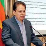 | Dr. Saman Weerasinghe delivering his address, reflecting on his distinguished diplomatic career and contributions to strengthening Sri Lanka-Russia relations | Russian Ambassador Levan S. Dzhagaryan delivering his address, emphasising the strengthening of Sri Lanka-Russia diplomatic and economic relations |