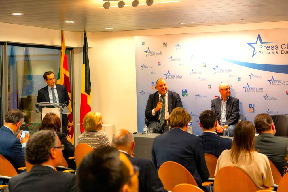 The Sri Lanka Embassy, ‘Diplomatic World’ and ‘Travel Tomorrow Magazine’ in Belgium and the Department of Commerce of Sri Lanka jointly organised a successful business forum; “Business & Tourism Opportunities in Sri Lanka” on 13 October 2025 at the Press Club Europe in Brussels. More than 60 participants including the officials from the EU institutions, Belgian authorities, private sector companies, investors, travel industry representatives, think-tanks and media professionals had the opportunity to explore Sri Lanka’s growing potential as an emerging business hub as well as a promising tourist destination in South Asia.