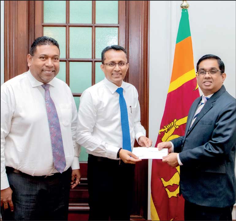 The cheque was formally handed over to Secretary to the President Dr. Nandika Sanath Kumanayake by United Motors General Manager Raveendra Siriwardana and Group Chief Operating Officer Charaka Perera.