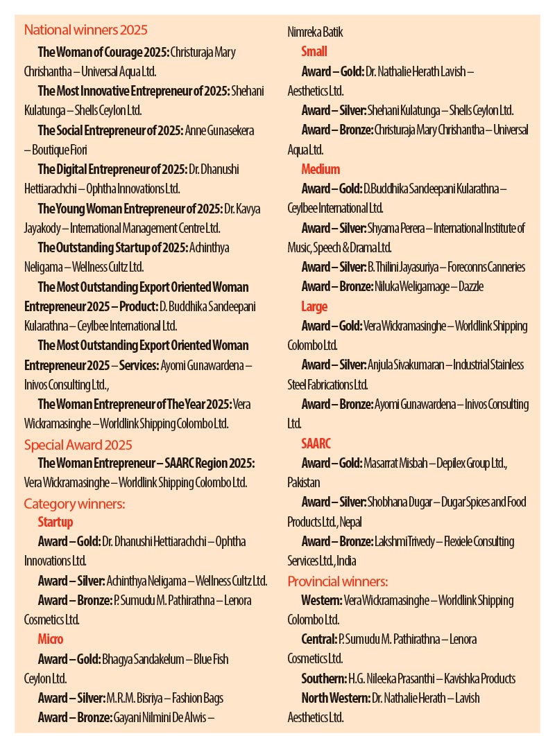 The Women’s Chamber of Industry and Commerce (WCIC) Prathibhabhisheka Women Entrepreneur Awards (WEA) 2025, held last week, celebrated forerunners that contribute as women-owned/women-led businesses in Sri Lanka.