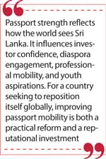There is an urgent need for a paradigm shift in Sri Lanka’s economy, where export diversification, strengthened governance, and institutional efficiency become essential pillars of reform. Passport strength reflects how the world sees Sri Lanka. It influences investor confidence, diaspora engagement, professional mobility, and youth aspirations. For a country seeking to reposition itself globally, improving passport mobility is both a practical reform and a reputational investment. Sri Lanka must adopt stronger, more effective strategies across multiple sectors. Building a resilient and prosperous future requires sound policymaking and clear strategic direction.