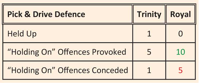 Although Royal has been exemplary in turning over possession at the breakdowns, their ball securing competency has been far behind Trinity's, which could allow the latter to be more successful in that mini battle, especially when defending Royal’s Pick & Drives, as their only means of survival.