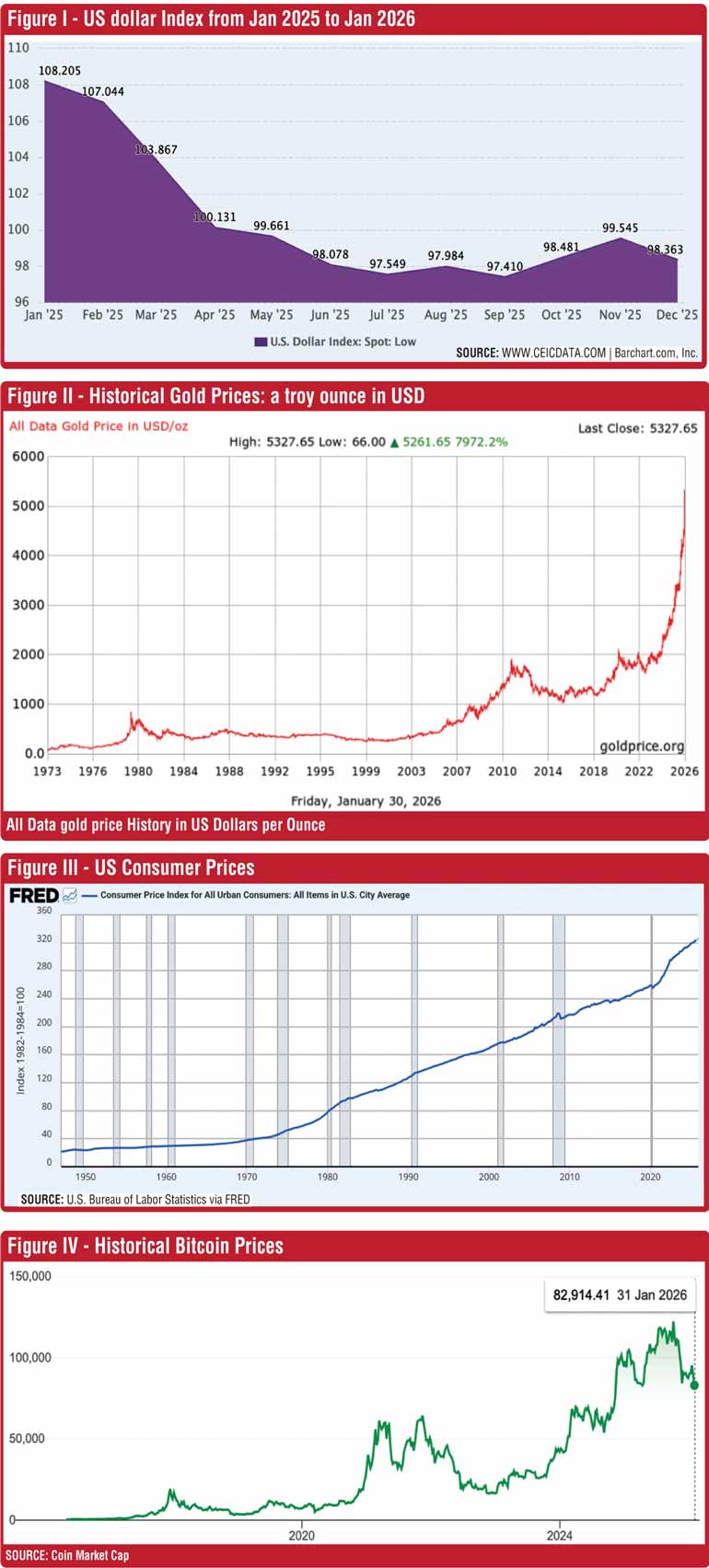 This was further emphasised by Canadian Prime Minister Mark Carney when he addressed the World Economic Forum in January 2026 [6]. Noting the end of the rules-based international order, he outlined how Canada, a long-time US ally, was adapting by building strategic autonomy, while maintaining values like human rights and sovereignty. He called for middle powers to work together to counter the rise of hard power and the great power rivalry to build a more cooperative, resilient world. With the shattering of the existing global economic order, the US dollar was the casualty.