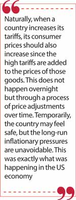 Naturally, when a country increases its tariffs, its consumer prices should also increase since the high tariffs are added to the prices of those goods. This does not happen overnight but through a process of price adjustments over time. Temporarily, the country may feel safe, but the long-run inflationary pressures are unavoidable. This was exactly what was happening in the US economy.