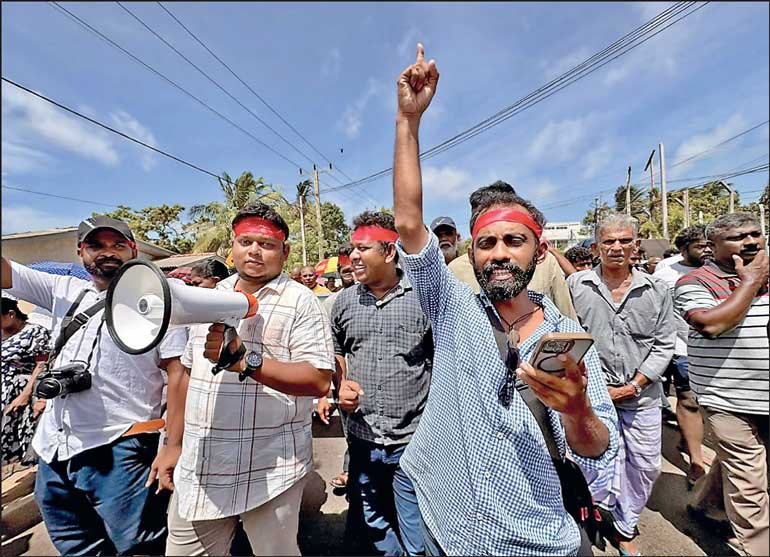 Leftist youth leaders of the Aragalaya join Mannar protest