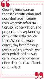 Human activities increasingly amplify natural landslide risks. Unauthorised forest clearing for timber, vegetable farming, tea cultivation, and settlements removes tree roots that anchor soil.