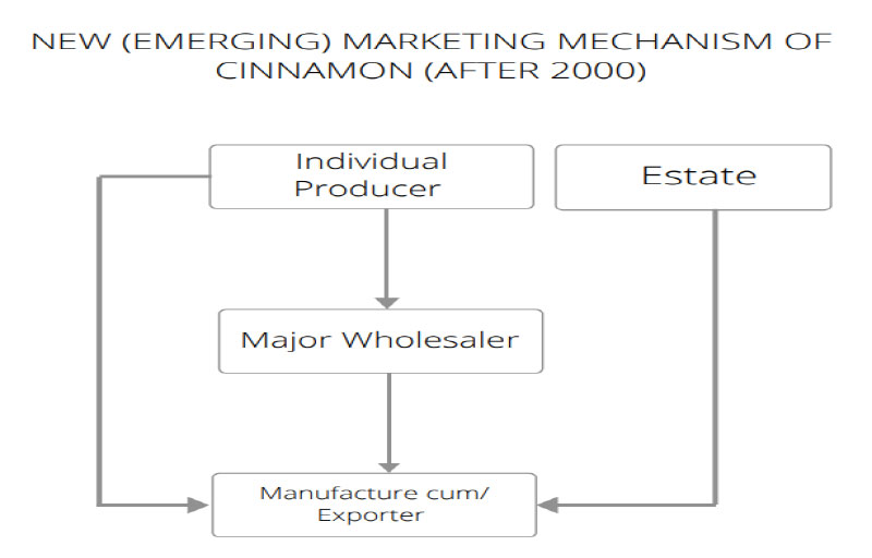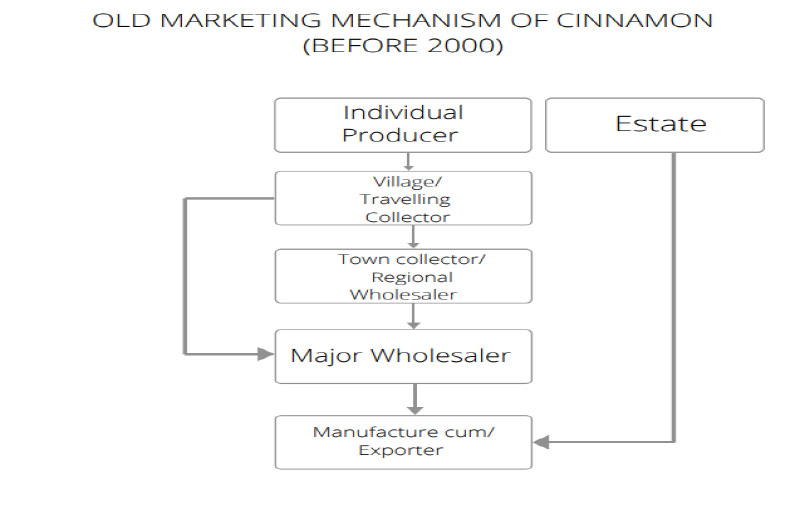 It is generally observed that the mechanism of domestic cinnamon marketing which had continued for decades has been undergoing changes since the last two decades. The mechanism that prevailed for long (‘old mechanism’) was as follows: Producer==>Village Collector/Traveling Collector==>Town Collector/Regional Wholesaler ==>Major Wholesaler==>Manufactures cum Exporter. Exporters have traditionally been in Colombo, closer to the seaport.