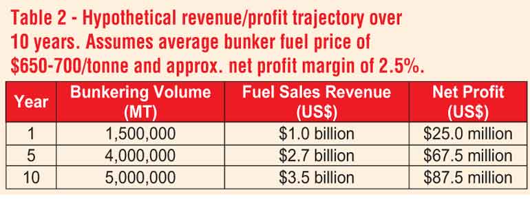 In addition to direct fuel sales, Colombo Port Authority would earn ancillary revenues: berth fees from tankers, wharfage on fuel, and services (water, sludge disposal, etc.) for ships calling to bunker. These add to the ROI indirectly. Overall, the 10-year outlook suggests the project can be financially viable, with cash flows ramping up in the mid-term and a respectable ROI in the long run, provided Colombo captures a share of the regional bunker market.