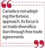 Canada is not adopting the fortress approach. Its focus is on trade diversification through free trade agreements. Because Canada’s industrial areas are mostly around the Great Lakes, very close to the US market and far from Asian and European markets, trade diversification is not easy.