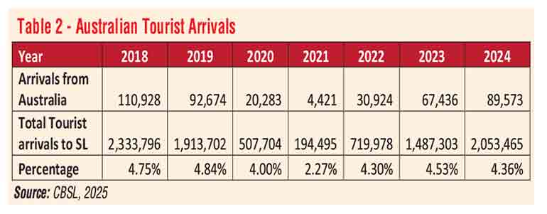 A significant portion of Australian tourism to Sri Lanka is driven by visiting friends and relatives (VFR), reflecting the close migration ties.