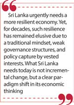 Sri Lanka urgently needs a more resilient economy. Yet, for decades, such resilience has remained elusive due to a traditional mindset, weak governance structures, and policy capture by vested interests. The country continues to rely heavily on a narrow export base—tea, rubber, coconut, and garments—while global competition demands innovation, diversification, and value creation. What Sri Lanka needs today is not incremental change, but a clear paradigm shift in its economic thinking.