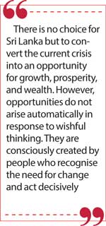 Therefore, there is no choice for Sri Lanka but to convert the current crisis into an opportunity for growth, prosperity, and wealth. However, opportunities do not arise automatically in response to wishful thinking. They are consciously created by people who recognise the need for change and act decisively. A crisis may present openings for improvement and change, but it is human action, focused and strategically directed, that will transform these openings into tangible benefits.