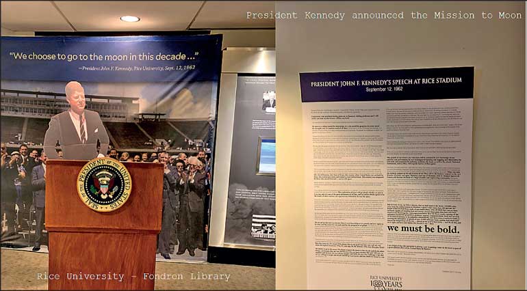 Whenever such an acknowledgement crosses my line of sight, the parallel universe of Sri Lanka too opens in my mind, where these types of impactful investments, even as donations, are quite rare. In distress, our reactions may be commendable and hit new levels, but we must understand that what matters is ensuring investments are carried out with foresight. They are the ones that can move the needle in the direction we want it to move. Multiple influential phrases have resulted from Houston – ‘Houston, we have had a Problem’, ‘Failure is not an option’, ‘not because it is easy, but because it is difficult’, all connected to the Moonshot mission.