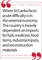 Where Sri Lanka faces acute difficulty is in the external economy. The country is heavily dependent on imports for fuel, medicine, food items, industrial inputs, and reconstruction materials.