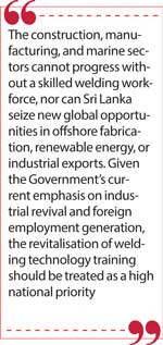 Despite Sri Lanka’s long-standing investment in vocational training infrastructure, the output quality of welders has failed to meet the needs of the manufacturing and construction sectors.