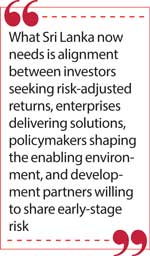 First, capital must be matched to context. Sri Lanka’s recovery and rebuilding needs, especially in the wake of the November 2025 cyclone, are best served by instruments that prioritise resilience and cash-flow sustainability. Debt, quasi-equity, revenue-based financing, and blended structures are often more suitable than pure equity models that depend on distant exits. Expecting venture-style returns in a volatile environment is neither realistic nor helpful.
