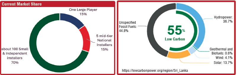 There are about 350 registered suppliers/installers in Sri Lanka; the vast majority are small players that are mainly operating in the Western Province. Approximately 15% of the market share is in the hands of one large player; another 15% is distributed among 5 mid-tier suppliers who are operating around the country. Balance 70% of the market share has been distributed among around 100 small players. Therefore, the solar market is a bit crowded and getting more and more competitive. The solar market is becoming price competitive, as there are many numbers of suppliers, mainly small and medium suppliers who are mainly competing in the residential market segment.