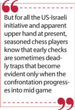 But for all the US-Israeli initiative and apparent upper hand at present, seasoned chess players know that early checks are sometimes deadly traps that become evident only when the confrontation progresses into mid game.