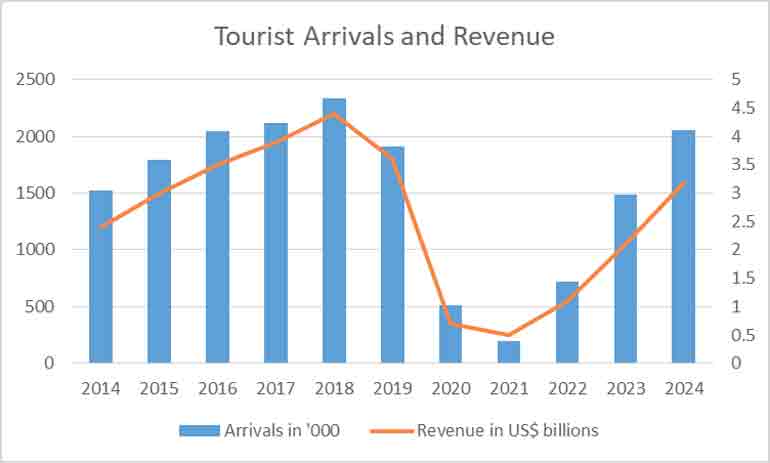 In 2018, tourism revenue peaked at over $ 4.4 billion (Central Bank Report 2024), but was impacted by events like the Easter attacks in 2019, which caused a significant loss of revenue, dropping it to $ 3.6 billion.