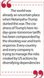 The world was already an uncertain place when Netanyahu-Trump started this war. The craziness of Trump’s here-today-gone-tomorrow tariffs has been compounded by the shooting war and Iran’s response. Every country and every company is trying to manage the risks created by US actions by diversifying dependencies.