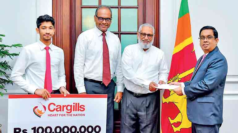 The contribution was formally handed over to the Secretary to the President Dr. Nandika Sanath Kumanayake, by Cargills Group Managing Director Imtiaz Abdul Wahid, in the presence of Cargills Group Executive Director Dilantha Jayawardhana.