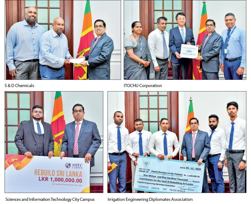 The relevant cheques were handed over to the Secretary to the President, Dr. Nandika Sanath Kumanayake, last week.
