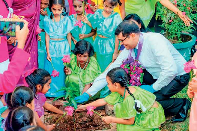 Seylan Bank Director/CEO Ramesh Jayasekara at the opening of the ‘Pahasara’ library at Sujatha Balika Vidyalaya