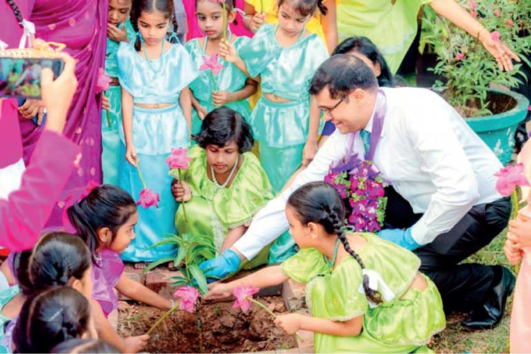 Seylan Bank Director/CEO Ramesh Jayasekara at the opening of the "Pahasara library" at Sujatha Balika Vidyalaya