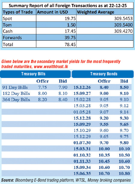 The total USD/LKR traded volume for 22 December 2025 was