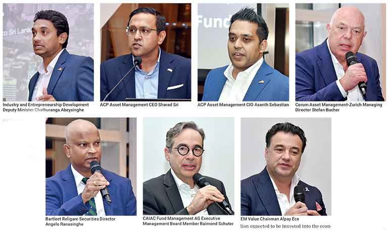 A panel discussion following the launch of the fund also brought together policymakers, market intermediaries, and European investors to assess growth prospects and capital reforms for the country. The panel featured the Deputy Minister of Industries and Entrepreneurship Development Chathuranga Abeysinghe, Bartleet Religare Securities Director Angelo Ranasinghe, CAIAC Fund Management Executive Management Board Member Raimond Schuster, EM Value Chairman Alpay Ece, and Corum Asset Management Zurich Managing Director Stefan Bucher, moderated by Daily FT Editor and CEO Nisthar Cassim.