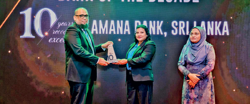 Amana Bank’s Managing Director/CEO Mohamed Azmeer said: “Being recognised as the Bank of the Decade is not just an honour, but also a validation of our unwavering commitment to deliver financial services that are both people friendly and development focussed. These awards inspire us to continue driving inclusive growth, uplifting communities, and promoting a value-based banking model that truly makes a difference in line with our mission of enabling growth and enriching lives.”